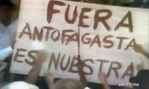 La imagen muestra una escena de las manifestaciones belicosas realizadas en los mitines en Valparaiso y Santiago, cuando José Antonio de Lavalle se encontraba en dicha ciudad para ofrecer la mediación al conflicto chileno boliviano, allá por marzo de 1879